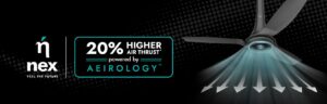 नेक्स को व्यापक कंज्यूमर रिसर्च यानि ग्राहकों की जरूरतों को ध्यान में रखते हुए डिज़ाइन किया गया है। यह एक प्रमुख टेक्नोलॉजी प्लेटफॉर्म है, जो यह सुनिश्चित करता है कि पंखे के ब्लेड और मोटर कंपोनेंट्स एक साथ मिलकर कुशलता से काम करें। यह दृष्टिकोण बेहतर परफॉर्मेंस और कम शोर के साथ ही हवा का सर्वोत्तम अनुभव सुनिश्चित करता है।
