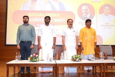 नई दिल्ली। दिल्ली भाजपा अध्यक्ष  वीरेन्द्र सचदेवा के सानिध्य में आज दिल्ली भाजपा सोशल मीडिया विभाग द्वारा केन्द्रीय कार्यालय विस्तार में आयोजित सोशल मीडिया वालंटियर मिट में तमिलनाडु के भाजपा प्रदेश अध्यक्ष  के. अन्नामलाई ने प्रदेश के लगभग 1000 से अधिक सोशल मीडिया वालंटियर्स को संबोधित किया और आगामी चुनाव में कैसे सोशल मीडिया का प्रयोग करना है इसके बारे में विस्तार से चर्चा की। प्रदेश उपाध्यक्ष  गजेंद्र यादव ने वालंटियर्स मीट की अध्यक्षता की और सोशल मीडिया विभाग प्रमुख डॉ. रोहित उपाधयाय ने मंच संचालन किया।