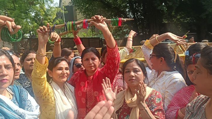 दिल्ली भाजपा महिला मोर्चा ने स्वाति मालीवाल के साथ हुई अभद्रता के खिलाफ आज मुख्यमंत्री को चूड़ियां भेंट करने को लेकर प्रदर्शन किया