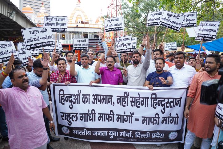कनॉट प्लेस स्थित हनुमान मंदिर के सामने हुए विरोध प्रदर्शन में दिल्ली भाजपा अध्यक्ष वीरेन्द्र सचदेवा, युवा मोर्चा के अध्यक्ष सागर त्यागी, मोर्चा महामंत्री अरुण दराल सहित युवा मोर्चा के अन्य पदाधिकारी और कार्यकर्ता शामिल हुए। प्रदर्शनकारियों ने राहुल गांधी के खिलाफ नारेबाजी करते हुए उनसे देश के करोड़ों हिंदुओं का अपमान करने के लिए माफी मांगने की मांग की।