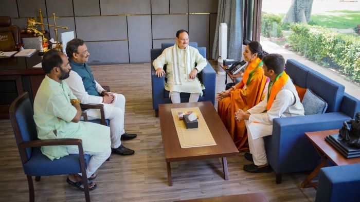 नई दिल्ली। घर घर में “अनुपमा” के नाम से लोकप्रिय एवं सुप्रसिद्ध टीवी कलाकार रुपाली गांगुली और फ्रीलांसर डायरेक्टर एवं ज्योतिष अमीय जोशी ने आज केंद्रीय कार्यालय में भारतीय जनता पार्टी की सदस्यता ग्रहण की। भाजपा की सदस्यता ग्रहण करने के पश्चात रुपाली गांगुली और अमीय जोशी ने भारतीय जनता पार्टी के राष्ट्रीय अध्यक्ष जगत प्रकाश नड्डा से मुलाकात कर उनका मार्गदर्शन लिया। रुपाली गांगुली और अमीय जोशी भारतीय जनता पार्टी के राष्ट्रीय महासचिव विनोद तावड़े, राष्ट्रीय मीडिया प्रमुख अनिल बलूनी और राष्ट्रीय मीडिया सह-प्रमुख डॉ. संजय मयूख की गरिमामयी उपस्थिति में पार्टी में शामिल हुई।